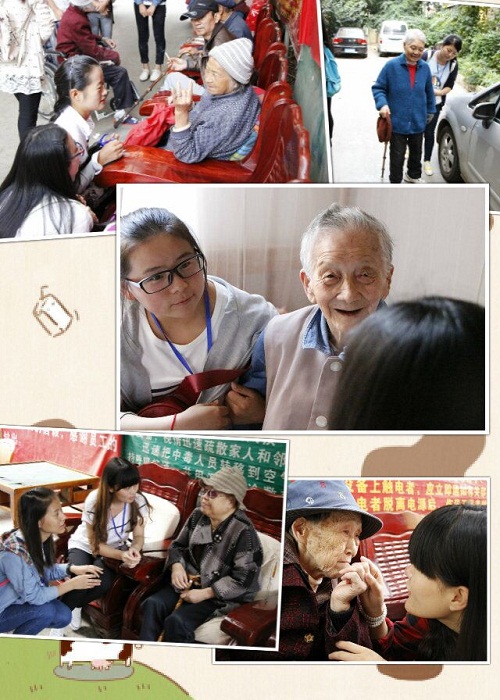 老人,是一群最缺乏陪伴的群体,他们要求的不多,仅仅是精神生活上的安慰,我们的到来在一定意义上使他们感受到家庭生活上的天伦之乐。年轻的心和年老的心在这里交汇,温馨如家的感觉把我们之间的距离一下拉近了许多。