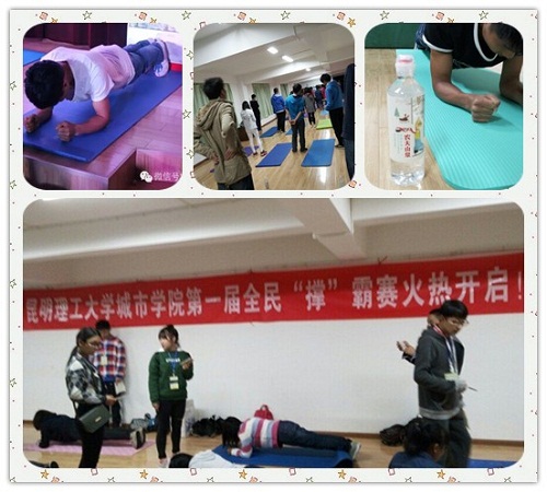 昆明理工大学城市学院首届“给我一个平板•撑起一篇梦想”平板撑体验赛在全民“撑”霸的号角中圆满结束,但健康生活、全民运动的理念已走入同学们心中,勇敢尝试、挑战自我的精神已开启同学们的大学之梦,相信在未来的生活中地科学子必将充分发挥“小平板之力”撑起自己的“大学之梦”!