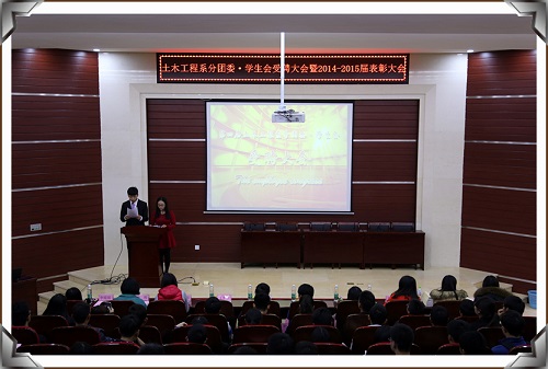 之后,土木工程系2014—2015学年表彰大会也拉开了序幕。荣誉证书金光点点,鼓励着这些一代又一代的莘莘学子,也将鞭策着我们继续前进。