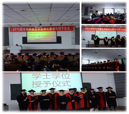 雄关漫道真如铁,而今迈步从头越;当激昂的国歌演奏完毕后,昆明理工大学城市学院副院长陈君若老师发表了热情洋溢的致辞,对即将步入社会的学子表示祝贺,也对我系2015届毕业生提出了四点希望:希望他们能够永远保持一颗进取之心,树立理想,脚踏实地,开拓进取开拓进取;希望他们能够时刻坚守一份责任之心,爱岗敬业,扎实工作,勇于担当;希望他们始终能够保持一颗自信之心,恪守诚信,乐观豁达,自立自强;希望他们能够拥有一颗感恩奉献之心,感恩父母,感恩师长,奉献社会,报效国家。随后主席台导师相继为70名优秀毕业生代表进行拨穗礼并为其颁发毕业证书,当毕业生穿着学士学位服恭敬地接过学位证书时脸上的那份喜悦、那份感伤和那份不舍,意味着他们四年的努力奋斗有了结果,他们将离开校园开始新的求知、求职,开始新的生活。