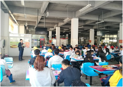 饮食服务中心主任符胜华从中华人民共和国食品安全法、饮食安全承诺、食堂物质采购流程、厨具消毒措施、食堂应急预案,食品安全管理制度等几方面对各食堂从业人员、学生代表、学生会干部进行了一次生动、全面的食品安全教育,引导学生尽量不要到校外摊点用餐,培养学生养成良好的健康饮食习惯。