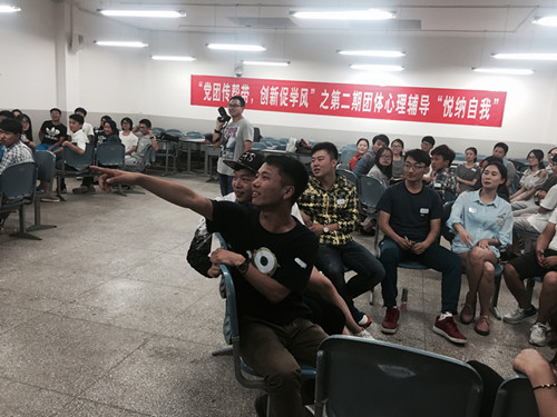 有种体验让你成长,有种力量让你进步。2016年5月13日晚7点,“党团传帮带,创新促学风”之第二期团体心理辅导游戏“悦纳自我”在润泽楼201教室欢乐开场。本次团体心理辅导活动由学生工作部、团委主办,云南思贤心理咨询公司承办,在各位老师的用心指导、试点工程筹备组成员和所有学员的热情参与下顺利进行。