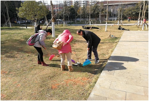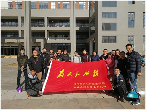 为进一步深入践行党的十九大报告精神,充分发挥党支部的战斗堡垒作用和党员的先锋模范作用。2017年12月21日,机械工程系党总支组织全部教工党员和学生党员同志进行了“美化校园环境,我们在行动”为主题的下社区公益活动。此次活动共30余人参加,地点就在我们校园内,主要负责打扫实训大楼前绿化区域。