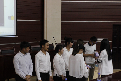 启航,让心灵找到方向,让青春永远地飞扬。首先,刘鑫老师宣布管理与经济系分团委学生会成立并颁发工作牌,工作牌虽小,但意义重大。从管经系分团委学生会递交申请到正式宣布成立的那一刻,海报,横幅,征文,每一个过程都饱含着大家的心血与期待,感谢他们为我们这个大家庭做出的努力,相信在大家的努力下这个大家庭会变得越来越好的。让我们乘上管经系这艘大船,跟随我们的掌舵人,乘风破浪,驶向梦想的彼岸。