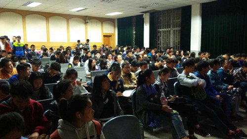 2015年10月13日19:30,由昆明理工大学城市学院机械工程系承办的城市讲坛第十四讲--《机电产品的创新》润泽楼101教室准时开启,本次主讲嘉宾为高级工程师赵永康老师。同时机械工程系机械基础课程教研室主任张海兵老师,机械专业教师王雪颖老师和欧阳立老师也来到了现场。本次讲座受到了全院学生的欢迎,全院各系近200名同学积极参加本次讲座,现场座无虚席。
