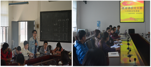 为有效落实《城市学院关于进一步加强学风建设的实施意见》,充分发挥基层党支部在学风建设中的带头模范作用,体育课部党支部于2015年11月6日中午12:30在德信楼大会议室召开了“发挥传帮带、党员促学风”的民主生活会。组织委员郭小辉老师,宣传委员夏新老师,教师党员梅万福老师、梅丽华老师、何军老师出席民主生活会,学生党员及全体积极分子均按时参加民主生活会。