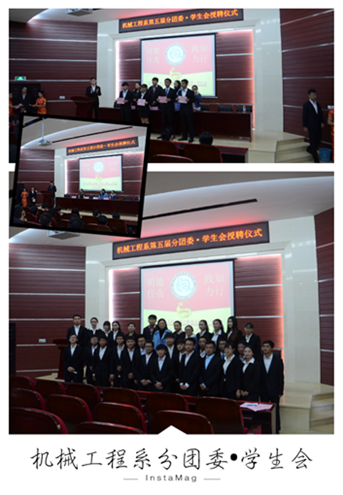 此次受聘仪式标志着昆明理工大学城市学院机械工程系第五届分团委·学生会团队正式形成,新一届的团学干部也将不负各位老师的重望,秉承上届学生会认真努力、踏实工作的优良精神,传承本届学生会“三不相信-不相信有完成不了的任务,不相信有克服不了的困难,不相信有实现不了的梦想”的理念,继续开拓进取,再创辉煌!把机械工程系分团委•学生会发展得更好!
