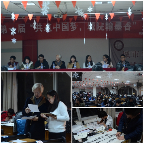 当今随着计算机的普及,让人们对于书法的重视渐渐淡化,从而导致当代大学生的书写习惯变差,为让书法能够在当代大学生之间流行,机械工程系分团委•学生会于2015年11月26日-27日特此举办了为期两天的城市学院第一届“共筑中国梦 城院翰墨香”书法大赛。本次书法大赛分硬笔组和软笔组,以此通过多种活动类型让当代大学生对书法产生广泛的兴趣。活动出场的评委为:云南省书法家协会会员、昆明书法家协会理事、昆明市职工书画摄影协会副会长、昆明市书画院书法家姜斌老师,机械工程系副主任李锡蓉老师、机械工程系学生工作办公室主任李烨敏老师、机械工程系分团委书记赵娟老师、城市学院代理主席杨琪蔚同学、城市学院书法协会会长李连彪同学。