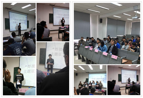 机械工程系焊接技术协会举办的“焊接与我同行”主题征文大赛于2015年12月3日11时圆满结束,本次活动分“焊接与我同行”主题论文征文、“焊接与我同行”主题演讲两个流程进行。出席本次活动的嘉宾有机械工程系副主任张玲老师,机械工程系焊接技术与工程专业主任张方老师,机械工程系焊接技术与工程专业副主任苑振涛老师,焊接技术与工程专业副教授沈正彪老师,焊接技术与工程专业老师许炳梁老师。