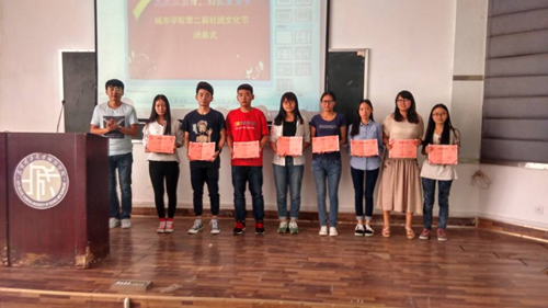 在社团文化节的最后闭幕式中,社团联合会根据《城市学院星级社团评定办法》对三星社团:跆拳道协会、轮滑社、魔术协会、韩语社、洛可可话剧;二星社团:鬼步舞、向月葵爱心社、魔方社、影视协会、MG音团、汉服社、跳蚤市场、乒乓球社进行了表彰。