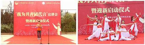 2015年9月13日下午1点,昆明理工大学城市学院“我为共青团代言”宣讲会暨2015级迎新启动仪式于学生社区如期举行。学院团委书记夏新老师,地球科学技术系副主任魏彬老师、学生工作部杨建坤老师,学院团委李显老师,团委副书记章帅,社联主席刘鑫达,青年志愿者协会副主席胡朝阳特邀出席了本次活动。同时还有学院团委、学生会,院社团联,院青协,院大学生艺术团代表代表和部分大一新生参加本次活动。