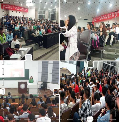 正草隶篆见功夫,书画艺术耀长空,手腕轻转,笔下生出一行刚正好字;色彩缤纷,纸上跃出一副如诗美画,而海报正是将文字与美画结合的一种艺术,它似乎无处不在,在抓住人们的眼球,冲击人们大脑的同时,用它斑斓的样子与深邃的内涵,传达设计者想传达的一切。为了给城院学子带来一场前所未有的视觉盛宴,2015年5月21日,土木工程系于报告厅举办了海报创意设计赏析讲座。本次主讲嘉宾为云南经济管理学院人文艺术学院教学督导、艺术设计类专业委员会副主任、专业带头人、云南工程职业学院经济信息学院教学督导、室内设计专业学科带头人张娅琴教授。同时,土木工程系副主任倪婷老师,系团委书记李媛媛老师也来到了现场。