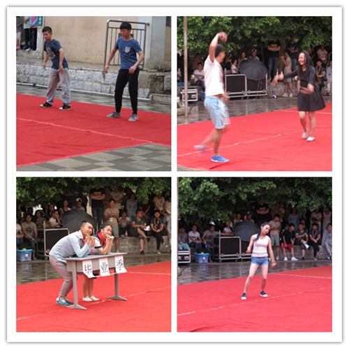 清风雅韵的民族舞过后,是激情澎湃的现代舞。B-Box的强烈节奏和王金河同学动感十足的舞蹈秀开启了现代舞之旅。表演中下起来了绵绵细雨,但这场雨丝毫没有浇灭场上选手们的激情,选手们的激情在雨里澎湃,观众的热情随节奏高涨。下雨天B-Box与《popping》更配,在节奏的碰撞下使得在场的观众疯狂尖叫;舞蹈《同桌的你》演绎了学生时代最美的爱情;音乐缠绵的《拉丁》尽显舞者的缠绵妩媚,舞者邀请夏新老师共舞,更是锦上添花;在非常具有感染力的爵士舞《tik tok》的氛围下结束了现代舞的比拼,参赛选手们可谓不分上下,最后由呼声最高的《同桌的你》的表演者杨盈瑞和王金河荣获舞王。