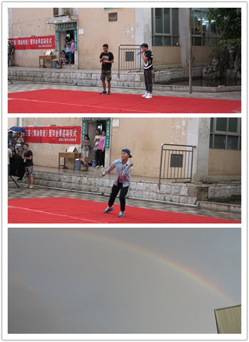 第三届“舞动奇迹”舞蹈大赛伴随着绵绵细雨落幕,此次舞蹈大赛将是最后一届,同时今天也是我们为毕业生举办的毕业季活动的启动仪式。阵雨过后,天边出现了彩虹。细雨道出了对大赛的不舍,对毕业生的留恋,不管怎么样,我们相信未来会更好。最后用信息工程系系主任晋帆老师的一句话与大家共勉,希望大家毕业以后能够过高尚、谦卑的生活,在另外一个舞台上舞动出更多奇迹。