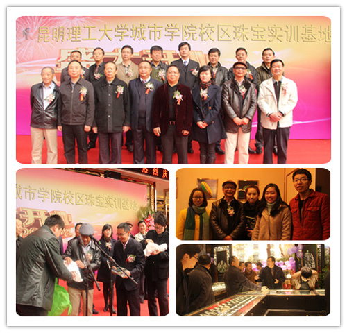 为加强学生的实践教学,充分利用校外实习实训基地,大力推进校企联合培养的职业人才模式,培养具有创新精神和实践能力的应用型人才。昆明理工大学城市学院与翡翠凤凰合作成立了我院珠宝实训基地,并于2013年12月9日上午在城市学院富华楼一楼盛大开业。