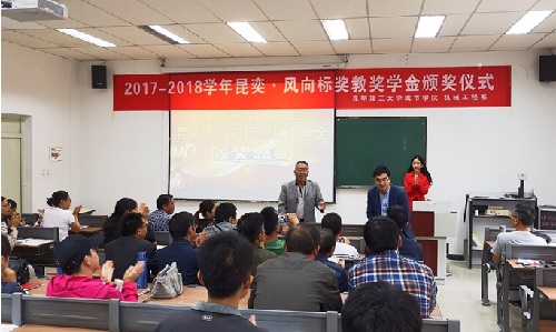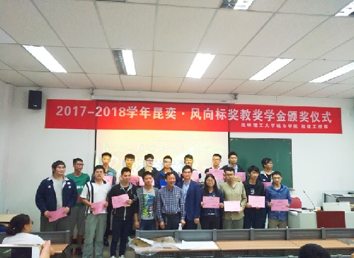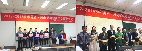 2018年5月31日下午,机械工程系2017-2018学年昆奕•风向标奖教奖学金颁奖仪式在城市学院创智楼107举行。机械工程系主任彭澎老师、昆奕机械制造有限责任公司总经理赵宝兴、深圳风向标教育资源股份有限公司驻校代表邓宇工程师、机械工程系全体教职工以及获奖学生参加本次颁奖仪式。