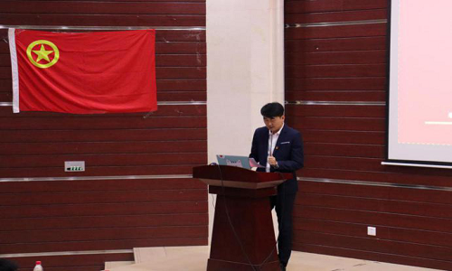 在庄严肃穆的团歌声中,活动渐渐拉开帷幕。学院团委书记夏新老师发言中提到:“大学学生社团的每位成员应该坚信党和国家的正确领导。虽然社会文化形式千千万万种,但不可随波逐流,人云亦云。要在自己的定位上谋思路,谋发展”。