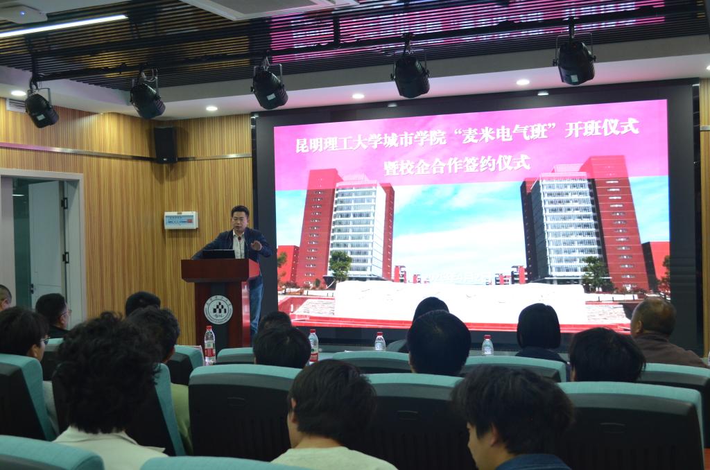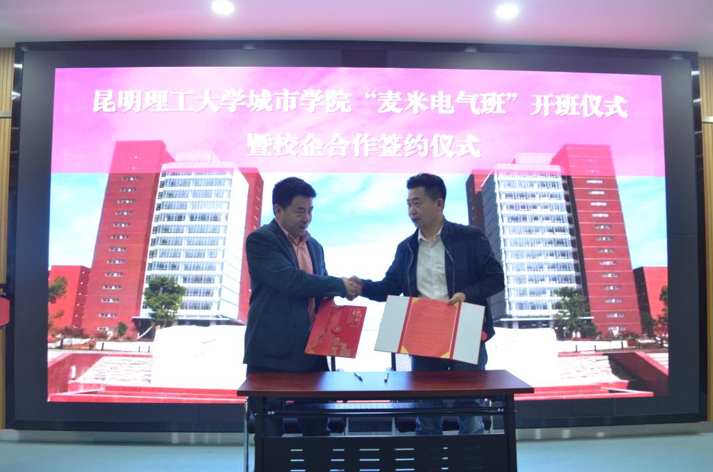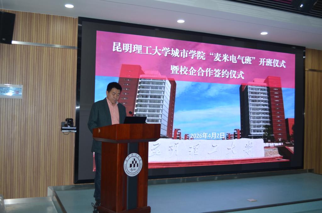 2026年4月2日,昆明理工大学城市学院与麦格米特电气股份有限公司在昆明理工大学国家级创新创业基地举行“麦米电气班”开班暨校企合作签约仪式。城市学院相关领导、企业相关负责人、各系部负责人以及师生代表出席本次仪式。