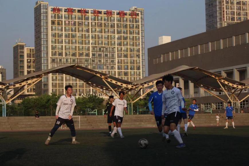 微风拂面,阳光正好,为比赛创造了良好的天气条件,球员们都激情四射、热情高涨。比赛从一开始就非常激烈,球员之间不时打出精妙的配合,创造出有威胁的射门,对手之间无论是抢球、传踢,气势凌厉,互不相让。进攻、防守,你来我往,精彩纷呈。场外学生也激情洋溢,纵情地为队员们加油、叫好,现场气氛十分热烈。城市学院在为期半个月左右的小组赛中共参加了三场比赛,取得一胜一平一负的好成绩。