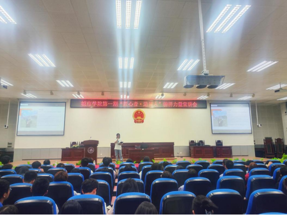 第二位宣讲人来自城市学院信息工程系的郭锦升同学,2023年度昆明理工大学“十佳大学生年度人物”、2021 年联合国《生物多样性公约》缔约方大会第十五次会议 (COP15)上岗志愿者。作为一个科研好、学习好、志愿服务好的优秀代表,他用“自由滚烫·疯狂呐喊—去定义属于自己的大学生活!”为宣讲主题,强调在大学期间全面发展很重要,他用自己的经历呼吁同学们走出自己的舒适圈,去制定自己的目标让自己忙起来。他表示同学们可以做好大学规划,制定年计划、月计划、日计划,并严格按照计划执行,清楚自己到底想要什么,用于尝试去见证更多种的可能,去遇见一个全新的自己!