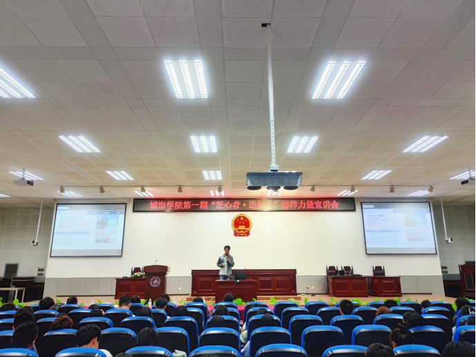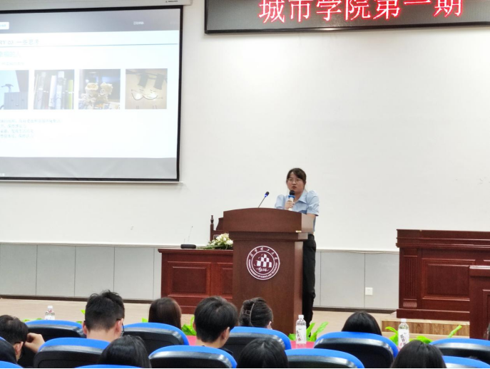 作为“匠心者·追梦人”榜样力量宣讲会的启动仪式,城市学院学生工作部唐培丽老师从探索“主体型”学风建设渠道、形成“推动型”学风管理办法、营造“内需型”良好学习氛围三大方面,介绍了我院学风建设特色工作办法,号召更多同学追寻光、成为光、散发光!