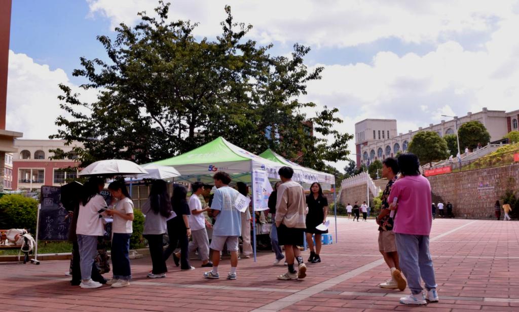上午9时,分团委、学生会、志愿者服务队在嵩明校区学生公寓楼下设置招新宣传点,开展招新宣传、咨询工作,发放招新报名表,并指导2023级同学填写招新报名表。