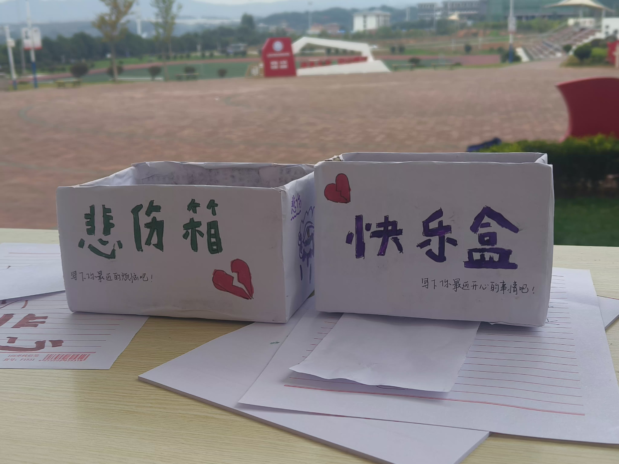 据悉,活动现场设立了两个“悲伤治愈交换箱”,一个为“快乐箱”,一个为“悲伤箱”。学生们可以将自己的悲伤、忧虑或压力写在纸条上,然后将其放入交换箱,并从中取走一件他人放入的纸条,或者阅读其他人的分享。无需言语,一纸之隔,便能感受到彼此的情感共鸣和支持,让每个人在治愈他人的同时也得到自我疗愈。