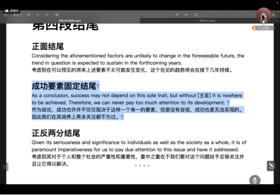 为充分调动建筑学系2024届考研学子备考的积极性,增强考研信心,掌握考研技巧,建筑学系邀请了新东方考研英语名师许健忻老师分别于2023年12月4日及12月5日为考研同学做了大作文专场和小作文专场讲解。因多数学生在外地实习的原因,本次讲座通过腾讯会议的形式开展,共计100余位考研及预考研学生参加了讲座。