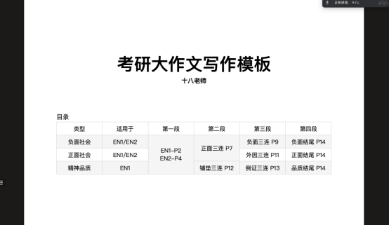许健忻先从整体入手,分析考研英语试卷题型、剖析分数布局;再从真题入手,讲解解题技巧和备考方法。他根据研究生考试统考英语评卷的经验,详细讲述了英语大作文的得分要点,并为同学们详细演示了该如何合理应用作文模版。