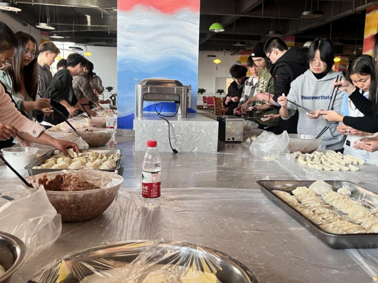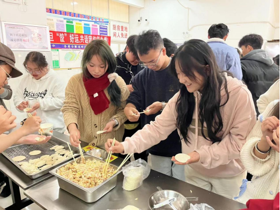 活动现场热闹非凡,师生们齐聚一堂,共同参与到包饺子的过程中。大家分工合作,和面、擀皮、调馅、包饺子,每个人都发挥着自己的特长。在包饺子的过程中,大家畅谈生活、学习和工作,分享彼此的故事和心得,现场气氛温馨而热烈。呈贡校区组织同学们进行了一场包饺子大赛,同学们以十人一组,分工合作,各司其职,为了团队的胜利而努力着。嵩明校区开展“团团圆圆”听口令“抱团”小游戏。随着饺子的陆续下锅,团委老师为同学们送上祝福寄语,期望同学在新的一年中能够平安快乐,事事顺心、如意;香气四溢,现场的氛围也愈发热烈。