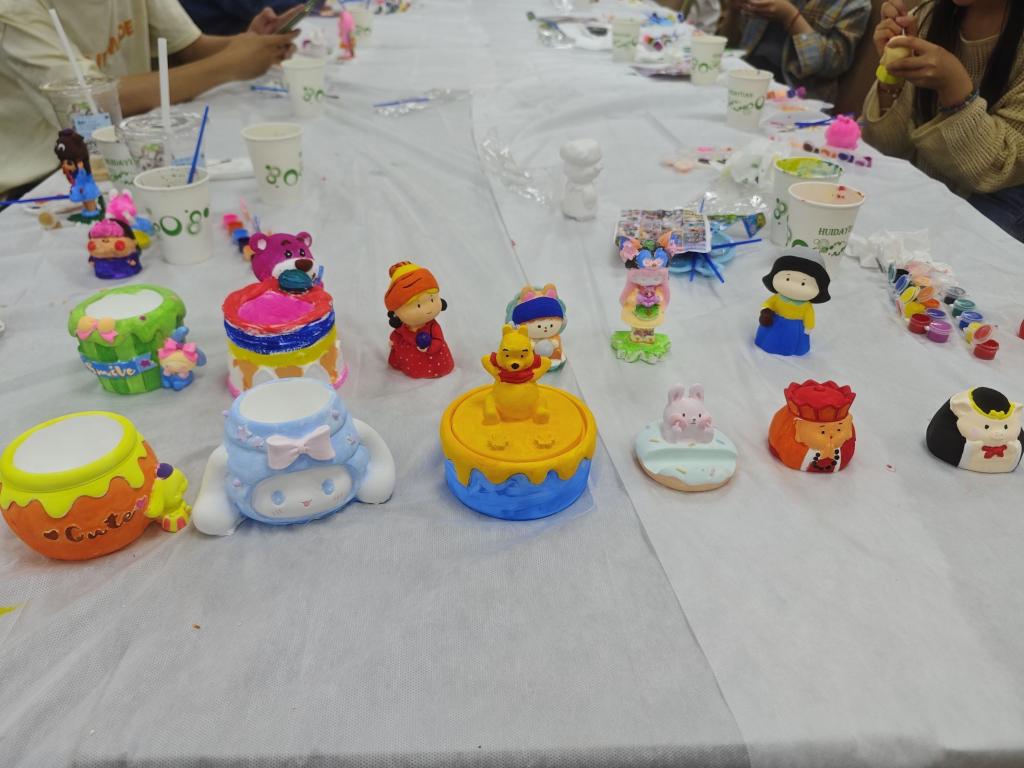 活动伊始,学生会成员和班委们相互协助,一起布置了活动现场。随着主持人的发言,活动正式开始,在主持人的引导下,师生们开始兴致勃勃地投入到石膏作品的创作中。大家一边动手涂石膏讨论涂色技巧,一边交流心得,分享大家在学习上的困惑、生活中的点滴趣事等,现场气氛温馨而融洽。经过一番努力,师生们共同创作出了一件件精美的石膏作品。这些作品不仅展示了大家的才华和创意,更成为了师生之间情感交流的见证。