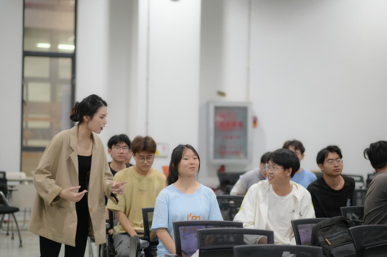 紧接着,宫梦楠带领同学们进行了仪态与表情的实际演练。宫老师通过生动的示范和讲解,指导同学们如何在面试中保持自信、从容的仪态,以及如何通过微妙的表情管理来展现个人的自信与专业度。同学们积极参与,现场气氛热烈。