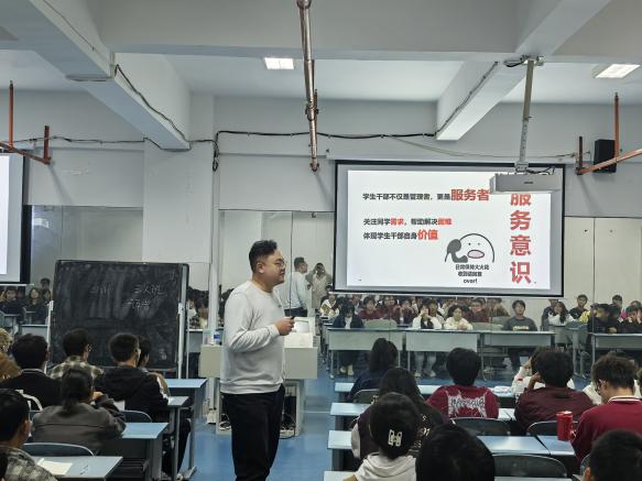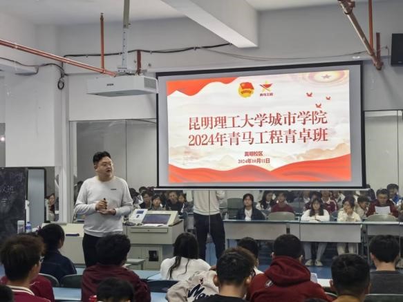 2024年10月11日晚,昆明理工大学城市学院2024年青马工程青卓班第一讲“如何成为一名合格的学生干部”在嵩明校区综合楼D3002-1教室顺利开展。本次培训由城市学院团委书记寸议鹏老师担任主讲,本次培训共125人参加。