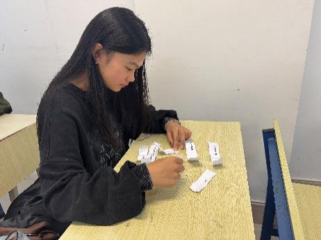 在速记单词环节,各组派一名成员抽取十个泰语单词和英语单词,各组抽取结束准备完成之后开启三分钟计时,时间结束后将所抽单词默写下来,该环节旨在激励同学们好好背单词,打好泰语以及英语学习的基础。