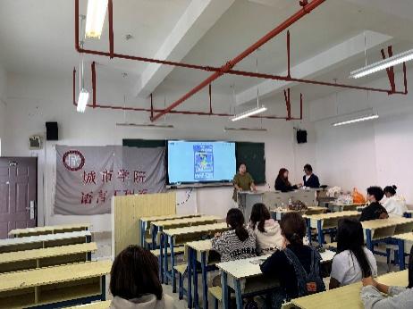 游戏结束后,学生会主席、副主席以及各部门部长为获奖的小组颁奖。部门部长给各部门开了一个简短的会议,对本学期的部门规划以及工作分工进行了介绍。最后城市学院语言工程系学生会全体成员合影留念。