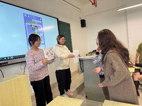 在画境联语环节,各组派两名成员抽取题目后,两名成员通过你画我猜的形式猜成语,答对题目多的小组获胜。这不仅培养了同学们的团队协作精神,还给同学们带来了很多乐趣。