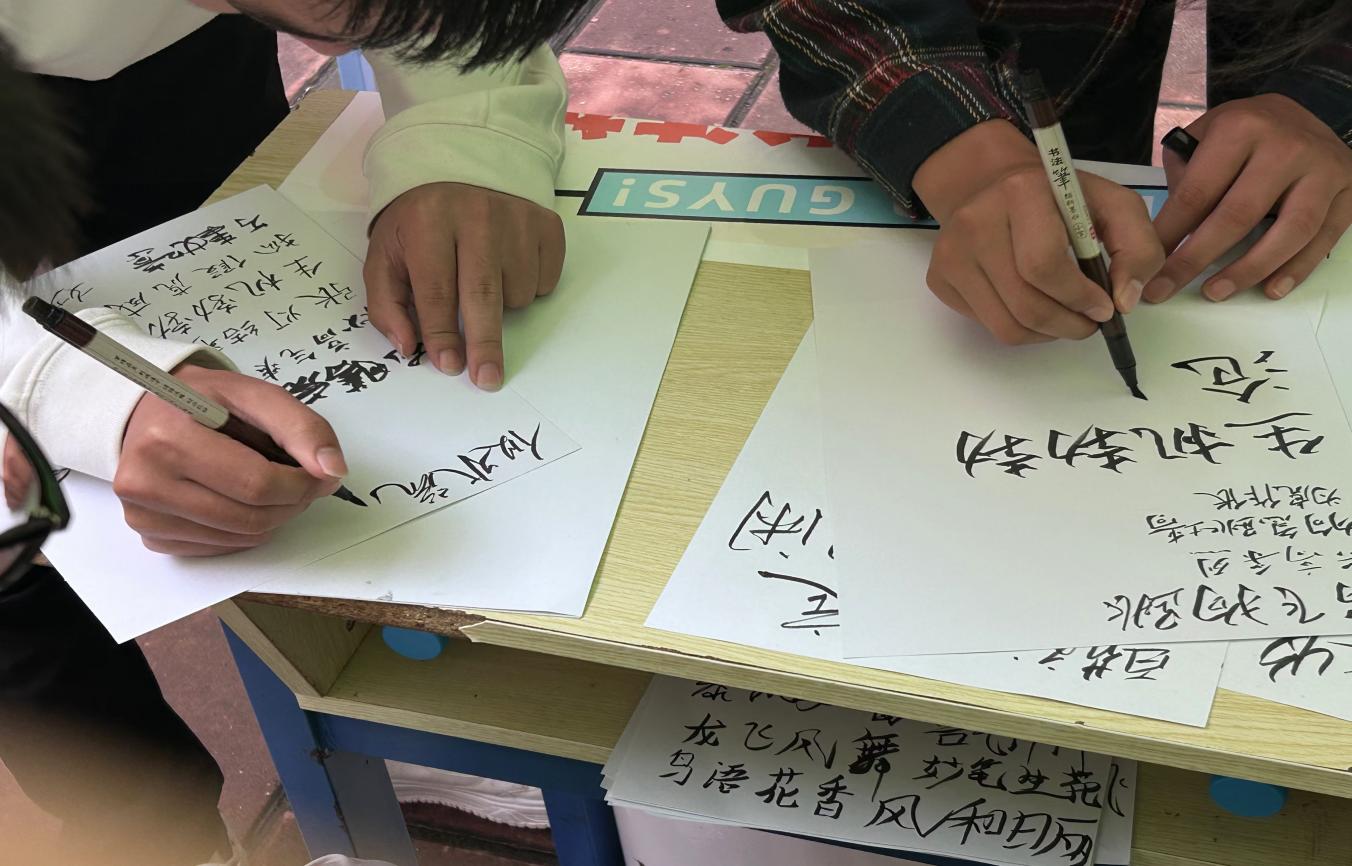 13个院级学生社团在各自展示位纷纷结合自身社团特色,设置各类学风互动体验活动,例如“平”水相逢,参与人员从英语卡片里面抽一张动作单词,根据单词做动作;声“英”不息,参与人员根据播放的英文歌曲片段,说出每个片段中关于动作或情绪的单词,还有“笔尖生花”、“棋差一招”等等。每个学生社团的学风小活动都各具特色,全部打卡完成的同学可获得英语四级真题、单词口袋书等奖品,活动期间工作人员认真引导参与人员进行活动,同学们也积极参与,反响热烈。