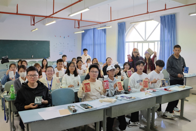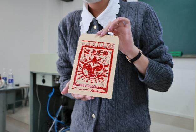 接着艺传学院的专业团队向同学们讲解甲马的来源及制作要点并现场指导学生们进行制作,耐心且细致地向大家传授每一个制作步骤和技巧。同学们全身心地沉浸在这奇妙的传统技艺体验里,在动手制作甲马的过程中,紧张的情绪渐渐舒缓,平日积攒的压力也在不知不觉间消散殆尽。当一幅幅精美的甲马作品呈现在眼前时,承载古老岁月的图像是在默默诉说着古老文化的神秘故事,深深吸引着在场的每一个人。
